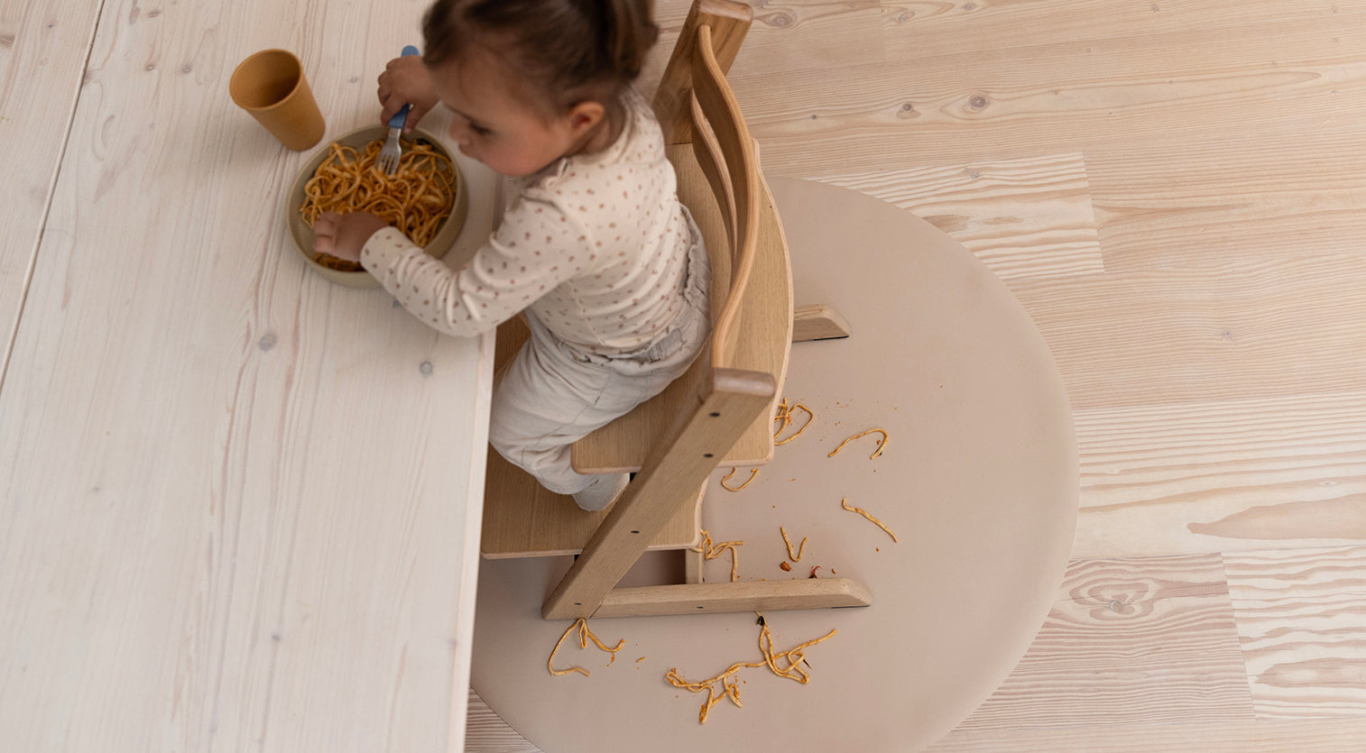 Stabilt og skridsikkert – højstolen glider let frem og tilbage, mens underlaget bliver på plads. Kan varmt anbefales!